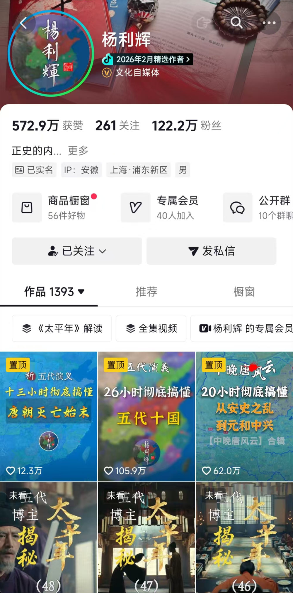 杨利辉对历史的敬畏与深耕,精准地回应了当下短视频时代更深层的文化渴求。当快节奏的“碎片化”内容充斥屏幕时,像杨利辉这样提供“系统知识”的创作者反而成了稀缺资源。