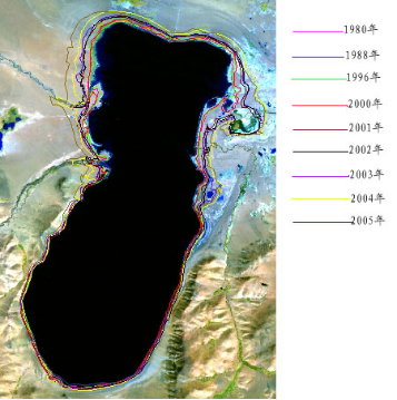 这是巴木错湖泊1980年至2005年水面面积遥感动态变化监测图。(受访单位供图)