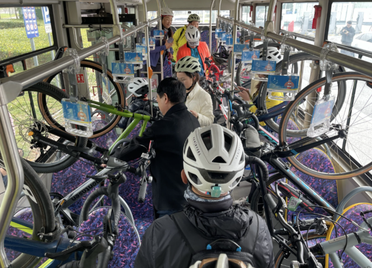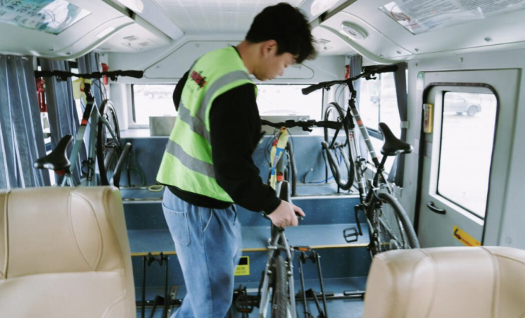2024年年底推出的“顺骑自然”单车巴士东滩专线,就将公交车改造成保障车,装载自行车随骑行团队移动。