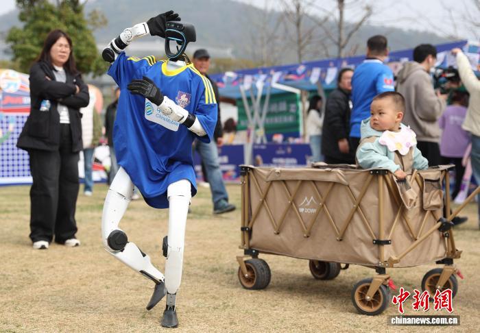 图为身着南京队球衣的机器人展示舞技。中新网记者 泱波 摄