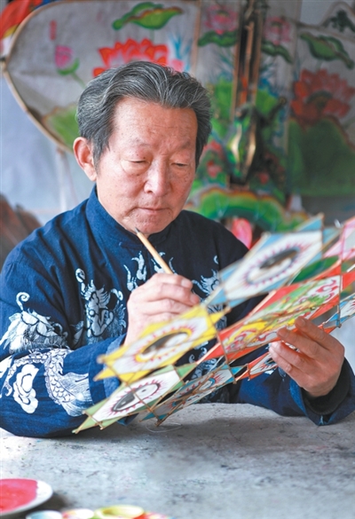 正在制作风筝的张效东。张效东供图