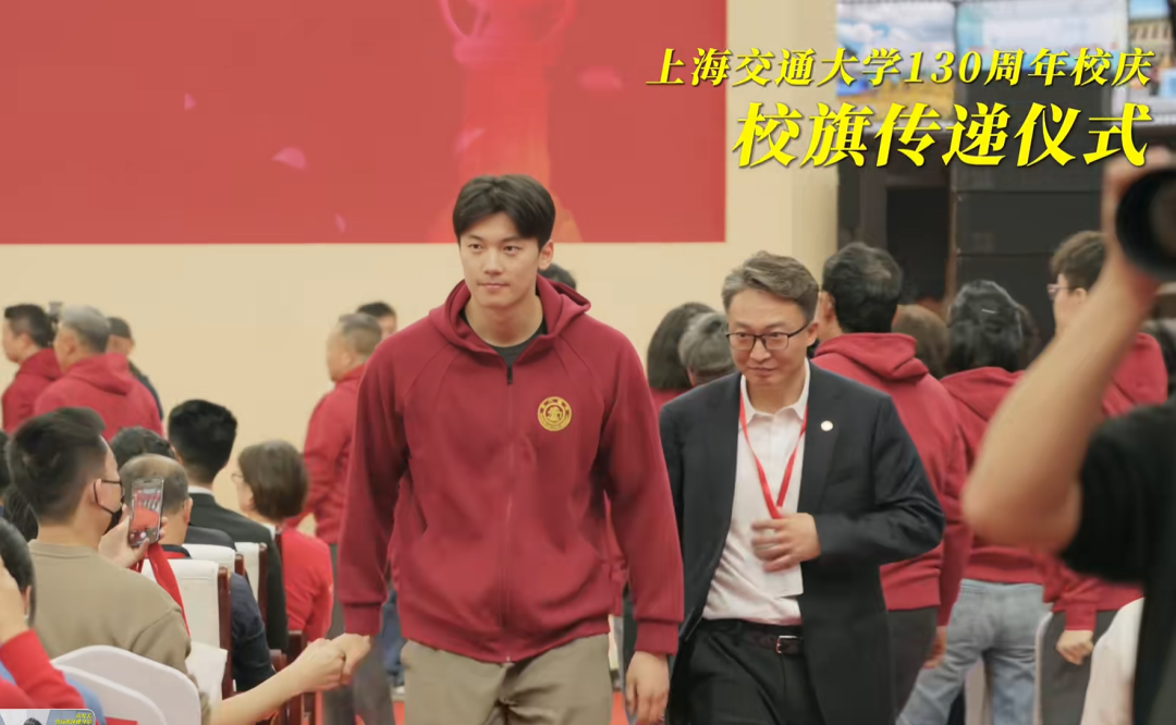4月6日,上海交大开启建校130周年庆活动,奥运冠军汪顺担任交大校庆护旗手,被众多校友偶遇!