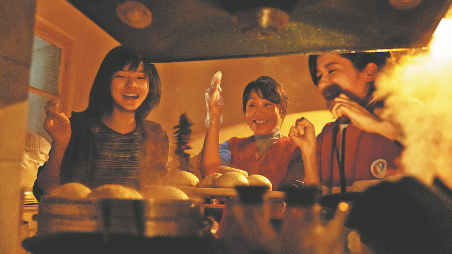 A scene in Vanished Name featuring the two teenage friends Ren Xiaoming (left) and Bai Shu (right) enjoying a rare relaxed moment in their hard lives as they cook steamed buns with Ren's mother. [Photo provided to China Daily]
