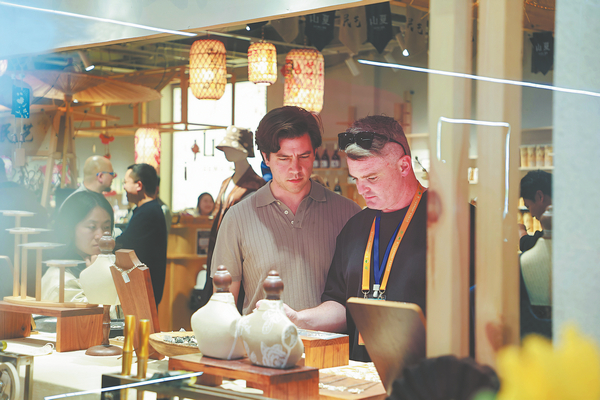 Expats admire cultural products in Guiyang, capital city of Guizhou. CHINA DAILY