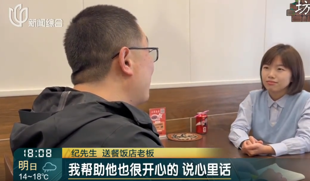 在记者的坚持下,老板说出了帮助两位老人的原因:纪老板的父亲跟丰老伯差不多年纪,父亲已不在人世,经历过亲人离世的痛苦,他把两位老人当成自己的亲人看待。