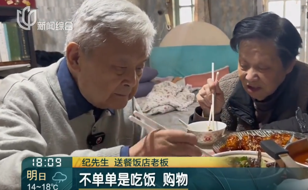 丰老伯打电话给饭店老板,老板只说老两口做饭麻烦,餐馆做饭方便,就送几个菜过去,老板还坚持分文不取。