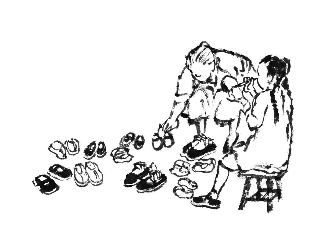 · “帮外婆纳鞋底”,蔡皋根据回忆所画。