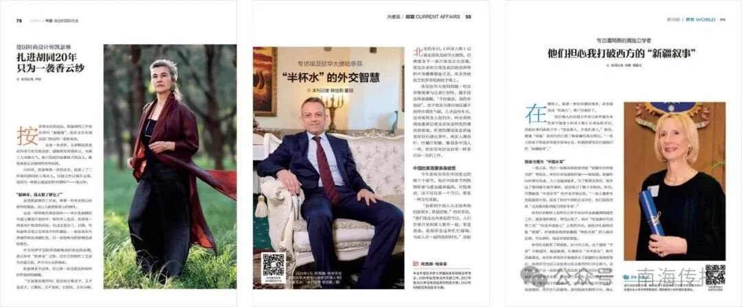 以子之矛攻子之盾,可通过真实、立体、全面的人物叙事,打破西方媒体在国际舆论场的叙事垄断。自2022年开始,团队集中力量开展国际人物采访工作,接连开设《大使说》《看中国》《身边的国际社会》三个各有侧重的人物专访栏目,互为补充,形成映照:《大使说》聚焦驻华使节专访,侧重讲述大使眼中的中国和中外交流,以感性视角传递真实体验;《看中国》以友华学者为专访对象,侧重展现专家视角下的中国经验,以理性视角输出更多“干货”内容;《身边的国际社会》则专访在华生活工作多年的国际人士,以接地气的烟火气呈现“老外变成自己人”的故事,风格趣味生动。