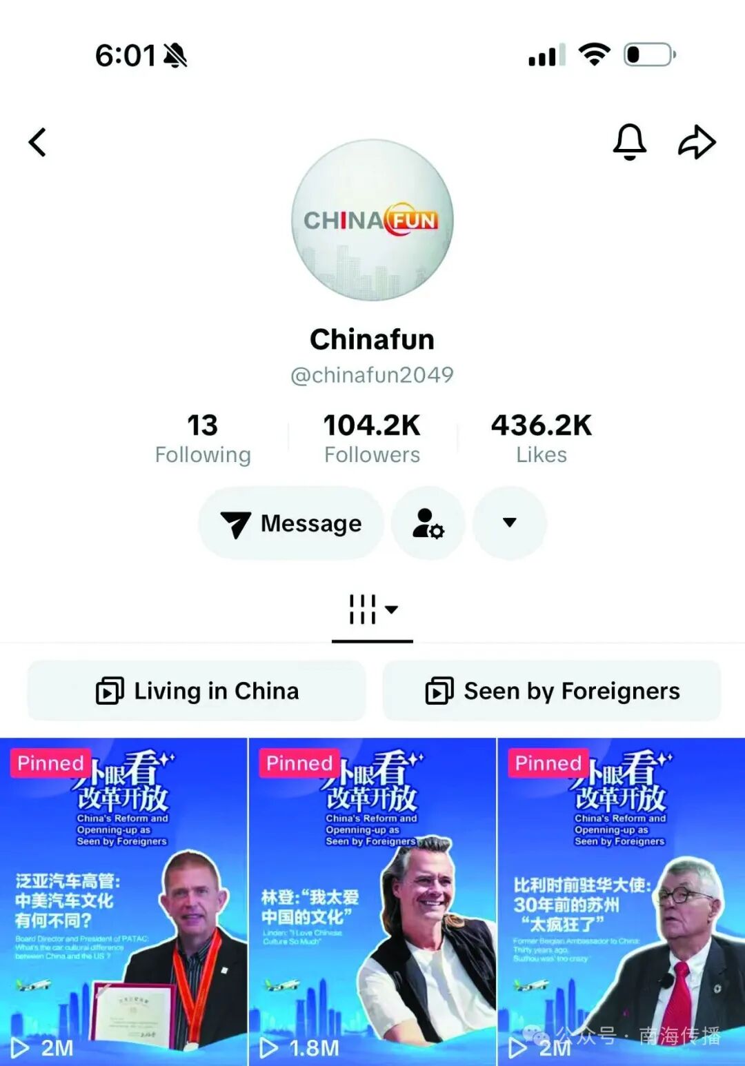 ChinaFun TikTok账号发布“外眼看改革开放”系列专访视频。