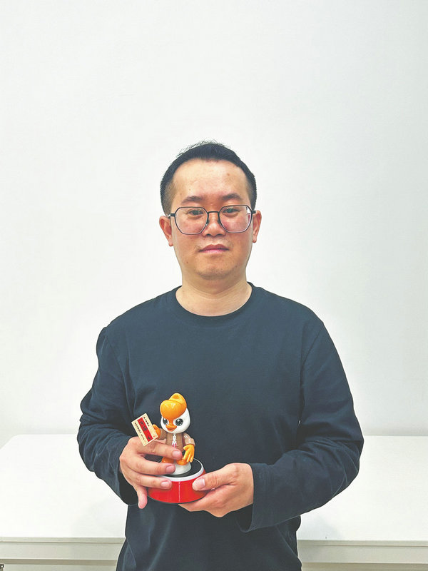 Wang Mubin showcases his AI toy Dingguagua, which can recognize the Chaoshan dialect. [Photo provided to China Daily]