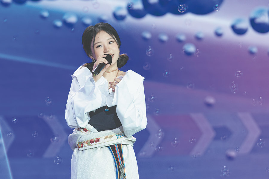 Mamcu performs a Tibetan song at a New Year celebration event. [Photo provided to China Daily]