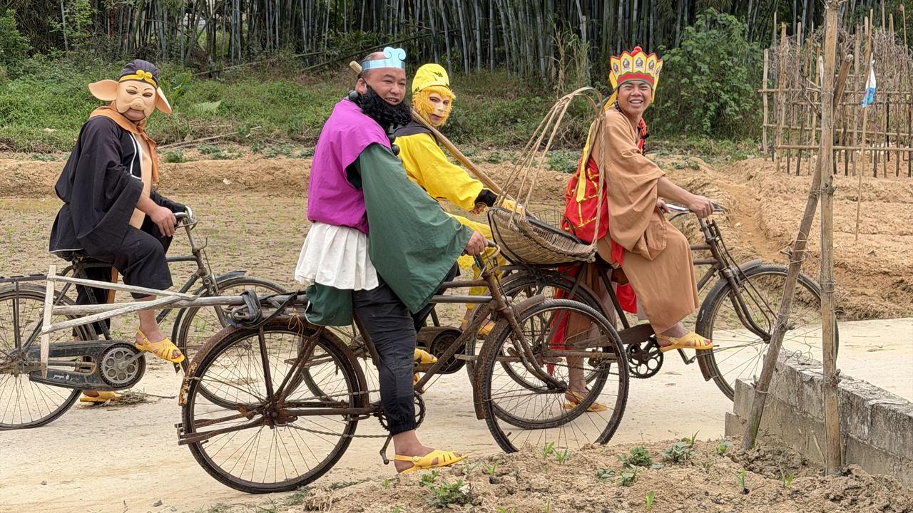 这就是陈淼和“上里西游记”直播间的真实现场。穿上戏服,他们仍是村民,造房子、插秧、骑自行车,演戏、直播也是他们生活的一部分,由此走红并被网友戏称为“全网最辛苦唐僧”。