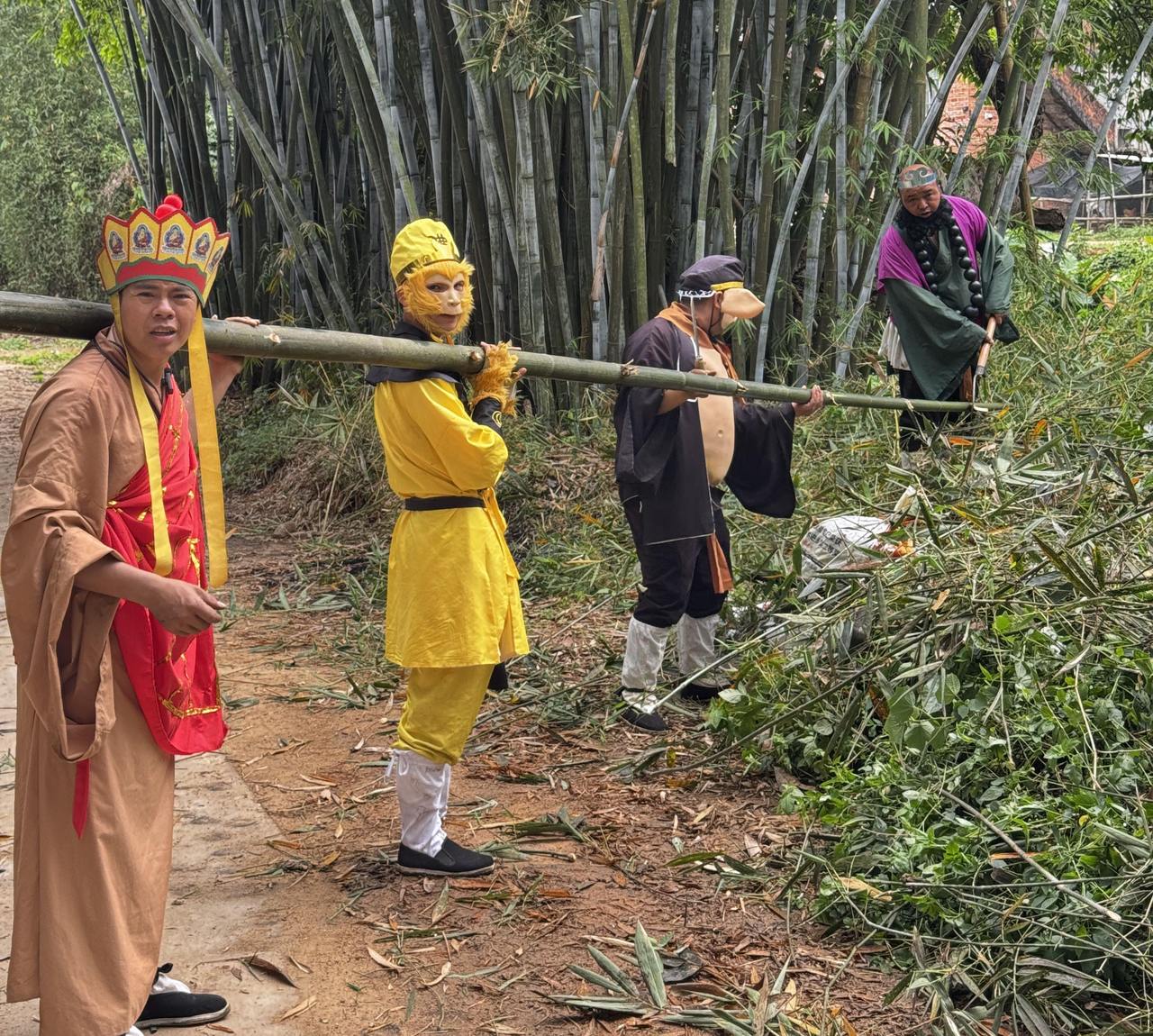 最初拍《西游记》的时候,他想着可以穿这身衣服去探望村里的独居老人,送点生活用品。“我们能力小,能做多少做多少。你做不到一百件,做五十件也很开心。”但有一次,他去一户老人家送东西,隔壁的人家不高兴了,骂他们不来自己家。后来,他就主要做“娱乐”了——拍戏,让大家开心,同时也给参与者发点钱。