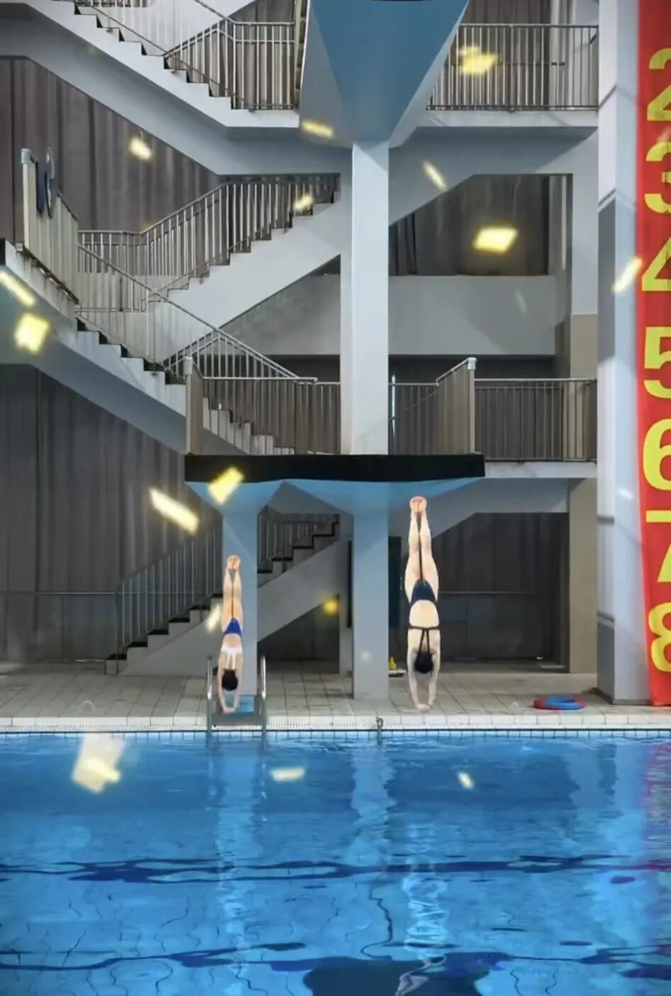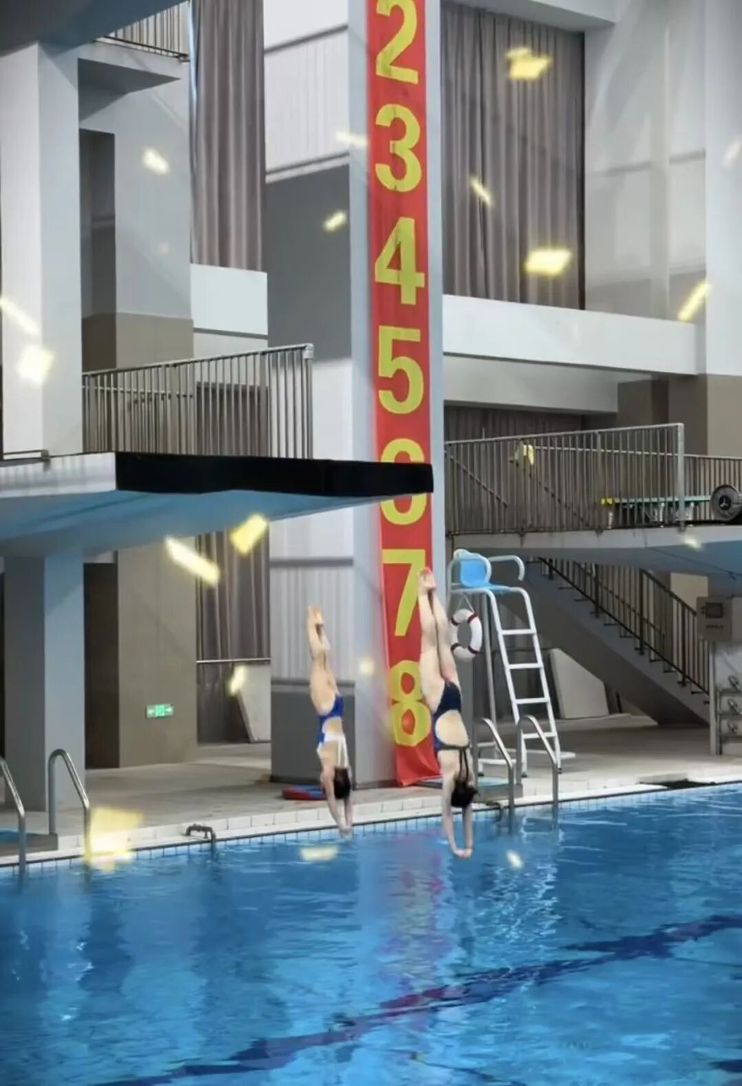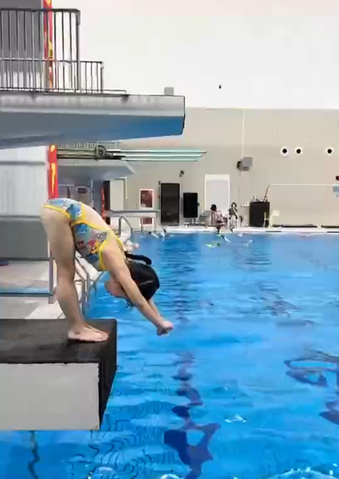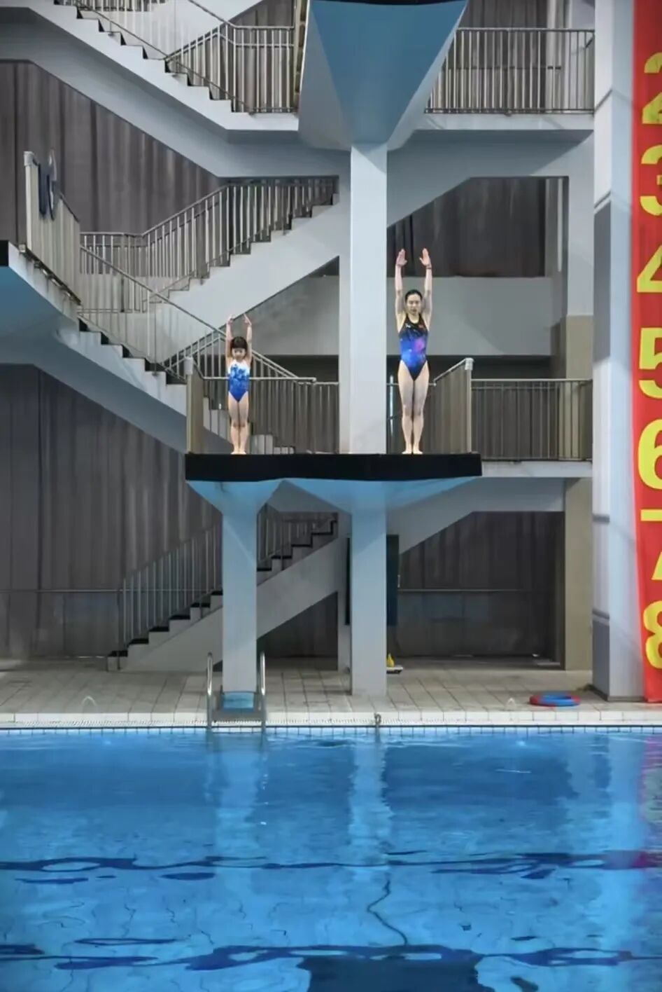 随后,母女二人开始跳水训练。