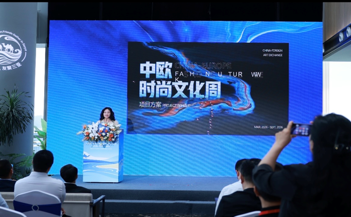 北京华熠文化传媒公司创始人赵玉发布“中欧时尚文化周”项目。