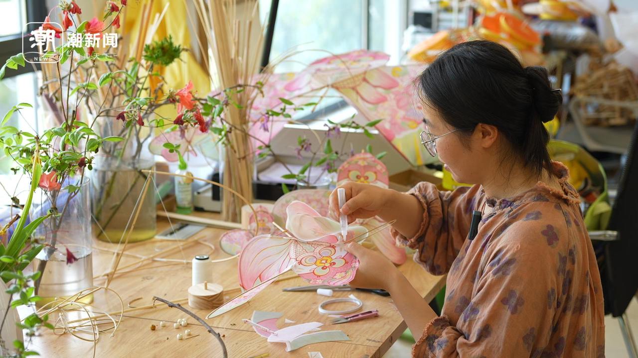 徐无瑕正在制作竹编风筝