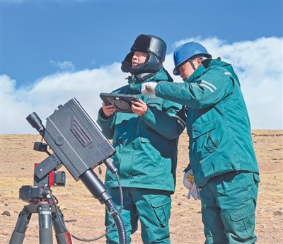 “唐古拉之鹰”电力天路运维班成员在操作设备。以上图片均为谢莉蓉摄
