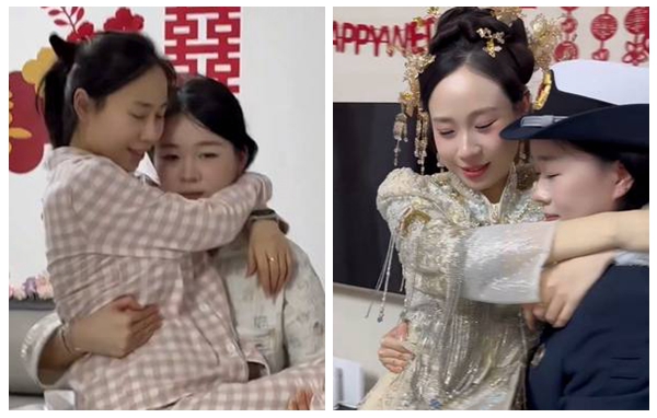 妹妹抱姐姐出嫁,变装瞬间太惊艳