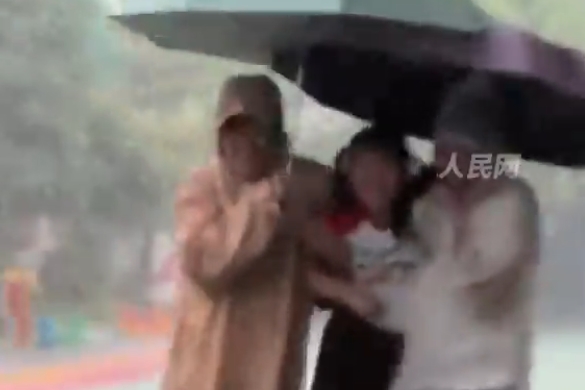 有爱一幕!暴雨天孩子被老师抬出校门