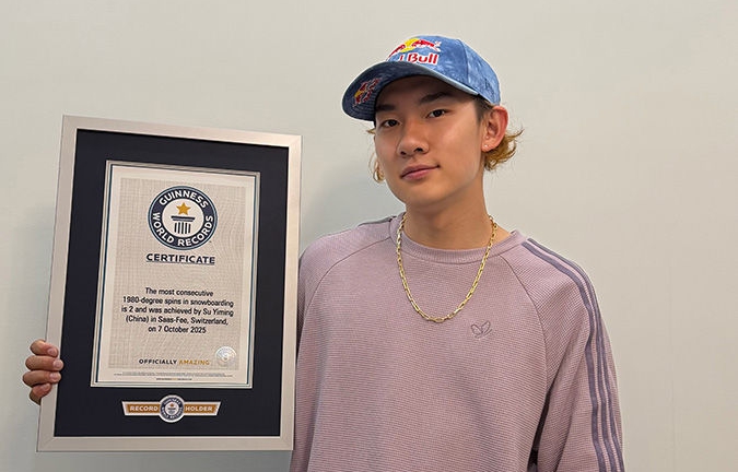 吉尼斯纪录网站25日发布的信息显示,该组织确认中国单板滑雪运动员苏翊鸣创造了“一次连贯滑行内完成单板滑雪1980度转体次数最多”的吉尼斯纪录。