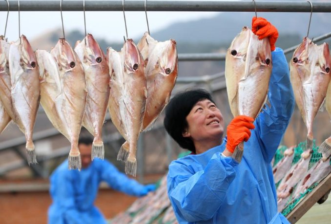 People dry fish in Jimo District of Qingdao, E China