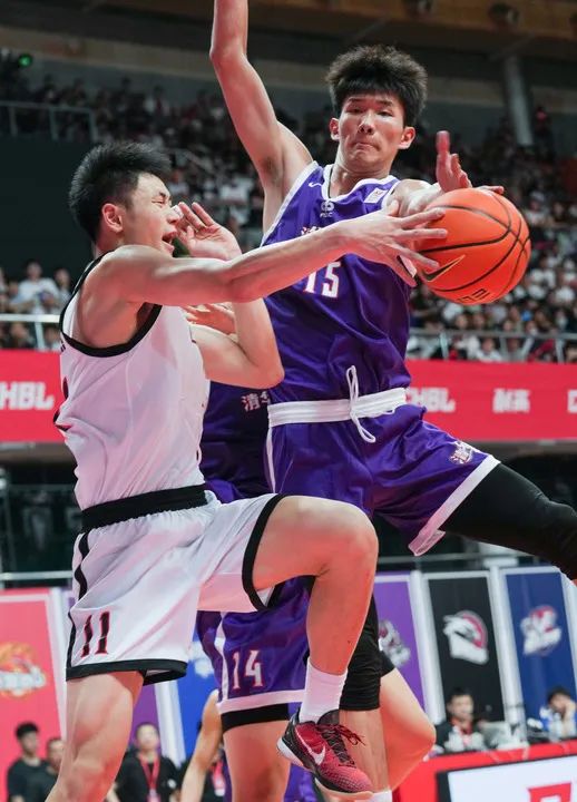 5月14日,回浦中学队球员林炜杰(前)在比赛中突破分球。新华社记者 孟永民 摄