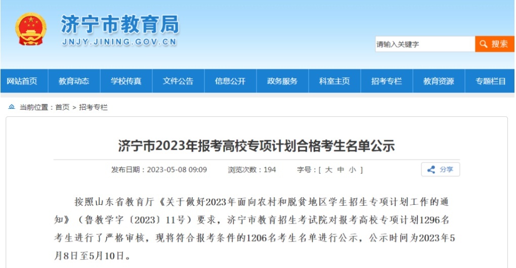 张作煊的名字出现在今年济宁市公布的报考高校专项计划合格考生名单中。