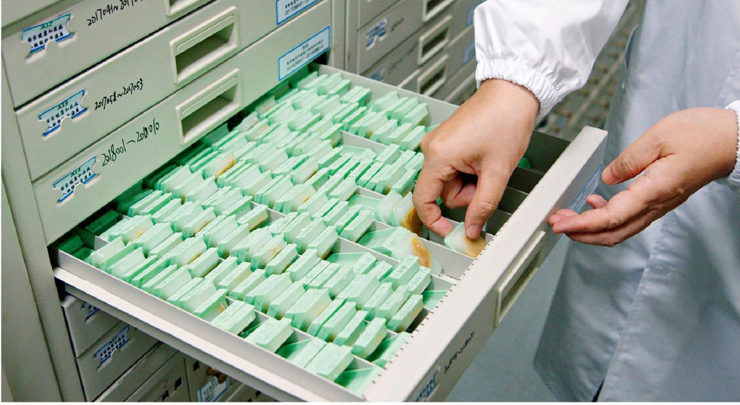 国家脑库档案柜里整齐排列着一小盒一小盒的石蜡组织块。(雷迅/摄)