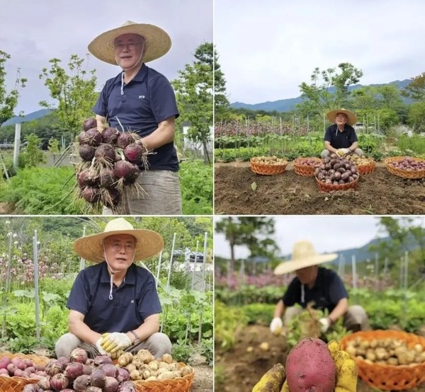 ·2024年6月17日,文在寅在脸书晒出自己种的洋葱和土豆。