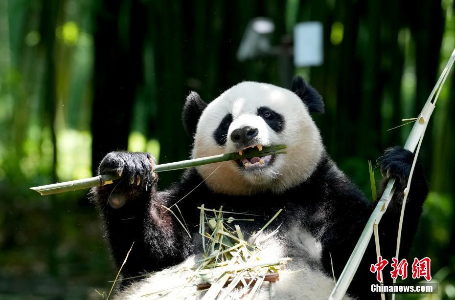 7月5日,中国大熊猫保护研究中心都江堰基地的海归大熊猫“添添”“美香”在基地兽舍里安享家乡生活。据悉,大熊猫“添添”“美香”分别于1997年8月27日和1998年7月22日出生于中国大熊猫保护研究中心卧龙核桃坪基地。此后,“添添”“美香”于2000年12月6日旅居美国华盛顿国家动物园,并于2023年11月9日返回中国。目前这两只海归大熊猫均居住在中国大熊猫保护研究中心都江堰基地。图为大熊猫“添添”在享用美食。