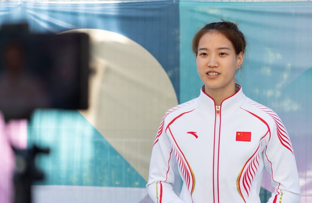 8月27日,巴黎残奥会中国体育代表团旗手、女子轮椅击剑运动员辜海燕在法国巴黎接受采访。新华社记者 张豪夫 摄