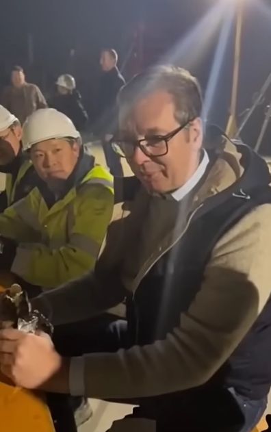 当地时间11月16日晚,塞尔维亚总统武契奇视察贝尔格莱德“2027世博会”建设工地,并亲自为中国工人们送上当地传统美食“普列斯卡维察”肉饼等食物,向中国和塞尔维亚工人表达诚挚感谢。