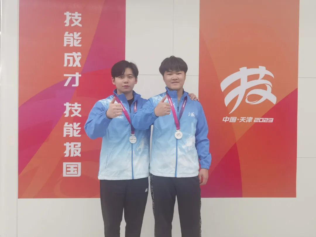 · 卢俊威(左)和谢辉铉在第二届全国技能大赛工业4.0项目中荣获银牌。