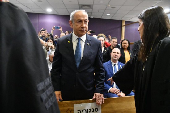 12月10日,以色列总理内塔尼亚胡在特拉维夫地方法院出庭作证。新华社发(鲁文·卡斯特罗摄/基尼图片社)