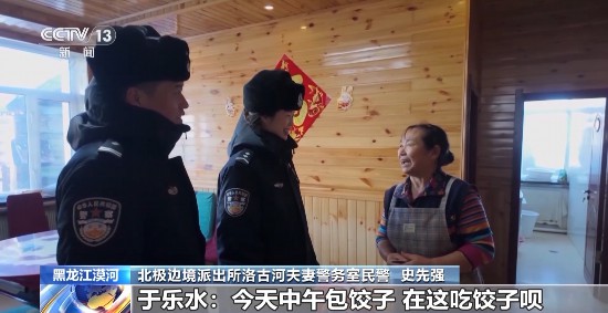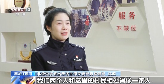 北极边境派出所洛古河夫妻警务室辅警 沈欣:洛古河村的民风特别淳朴,我们跟村民相处得像一家人一样。一开始可能我们两个年轻人刚来,他们可能也不习惯,可能觉得两个年轻人能在村里头长待吗,后来也是经过我俩入户,相处得像一家人一样。他们都把我们当成自己的孩子,谁家做好吃的了,包饺子包包子,都会喊我们一起去,我们也慢慢地融入了进来。