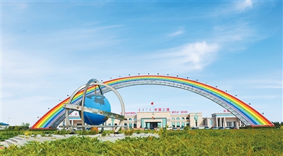 二连浩特公路口岸象征中蒙两国友谊的彩虹桥。 二连浩特市融媒体中心供图