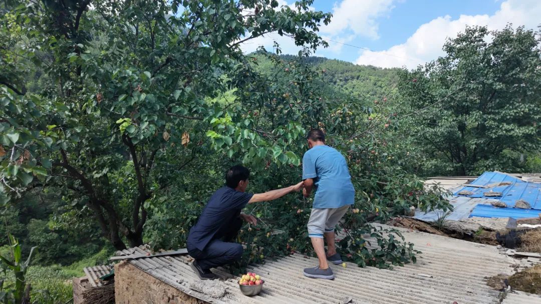 海松帮桑建国摘果子。(7月26日摄)
