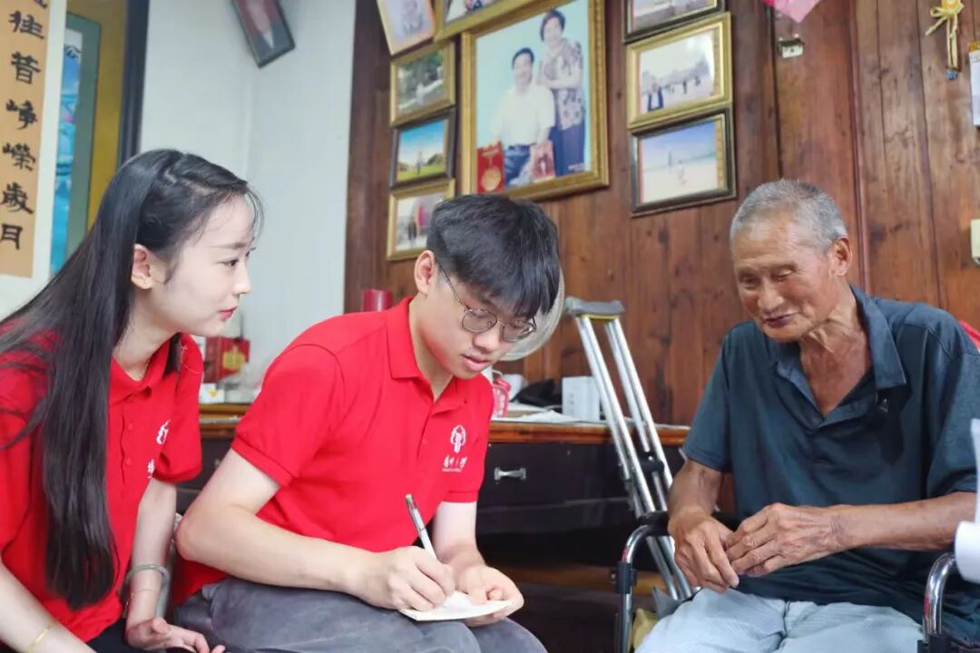 今年暑假,张欣蕾联系上了同学此前托付她关注的抗战老兵刘进喜,并到他家中进行了实地采访。“97岁的刘爷爷住在扬州的一个老小区里,身体很好,偶尔还刷短视频,自己还能去公园健身。我们采访时,他从抽屉里拿出一张军装照,说这是他以后要用作遗照的照片。他还跟我们说,‘一起上战场的同乡有10个人,现在就剩我一个了,你们来采访,特别开心,有人陪我聊聊天,回忆回忆过去的老战友’。”