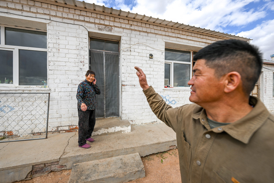 9月23日,钢宝力达向母亲色楞巴拉挥手告别。新华社记者 连振 摄