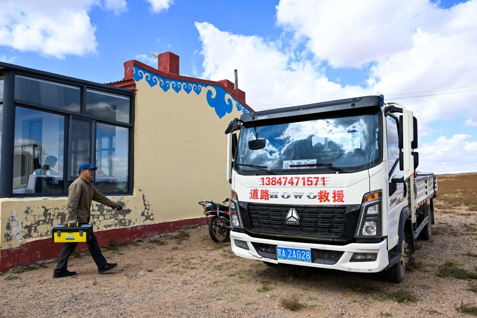 “我从小对机械感兴趣,又当过兵修过车,我在这方面能做点事。”钢宝力达说。2001年,他注意到卫境嘎查地处边境,牧民修车不便,他决定干汽修,为牧民和过往车主提供方便。至今,钢宝力达仍是方圆几十公里内唯一能够修车救援的牧民。