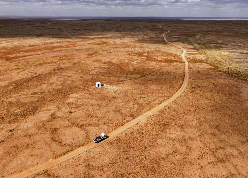 9月23日,钢宝力达驾驶救援车行驶在草原路上(无人机照片)。新华社记者 连振 摄