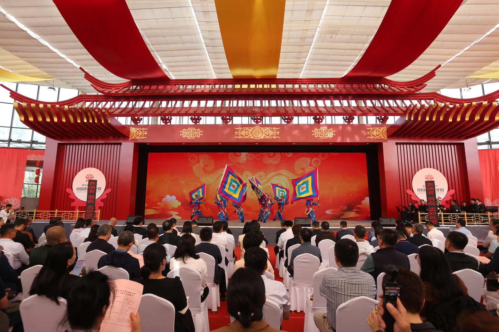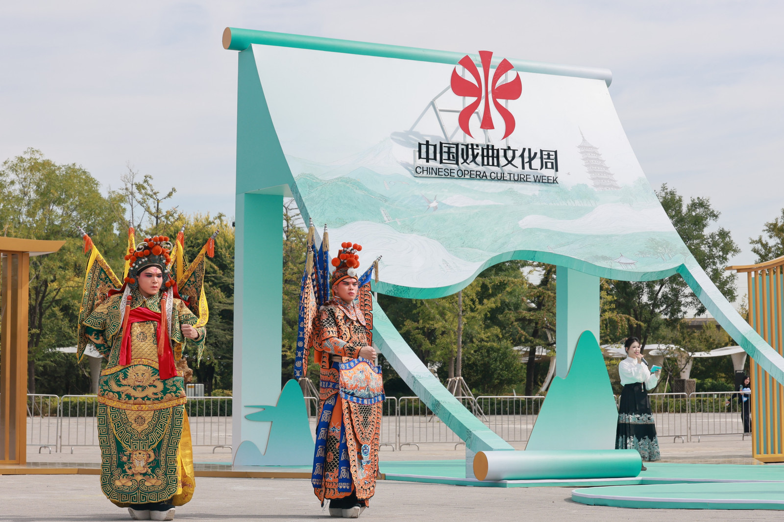 “锦绣山河韵流芳,戏苑千年又新章!”“大家好!我是你们的小向导——戏宝!未来7天北京园博园将化身戏曲百花园,快点跟我一起去看看吧!”伴随北京电视台主持人孙扬与数字主持人“戏宝”充满科技感与艺术感的开场,第九届中国戏曲文化周于2025年9月29日上午在北京园博园阳光剧场启幕。从9月29日至10月5日,北京园博园将连续7天上演近400场精彩演出及配套活动,邀八方来客共赏园林秋色,沉浸式体验中华戏曲的无尽魅力。本届戏曲周,丰台区与中国戏曲学院携手打造的“国戏凤凰”也正式揭幕,共同开启戏曲艺术传承与创新的新篇章。本届戏曲周主场活动期间(9月29日至10月5日),北京园博园将免费向公众开放,无需预约,可直接入园。