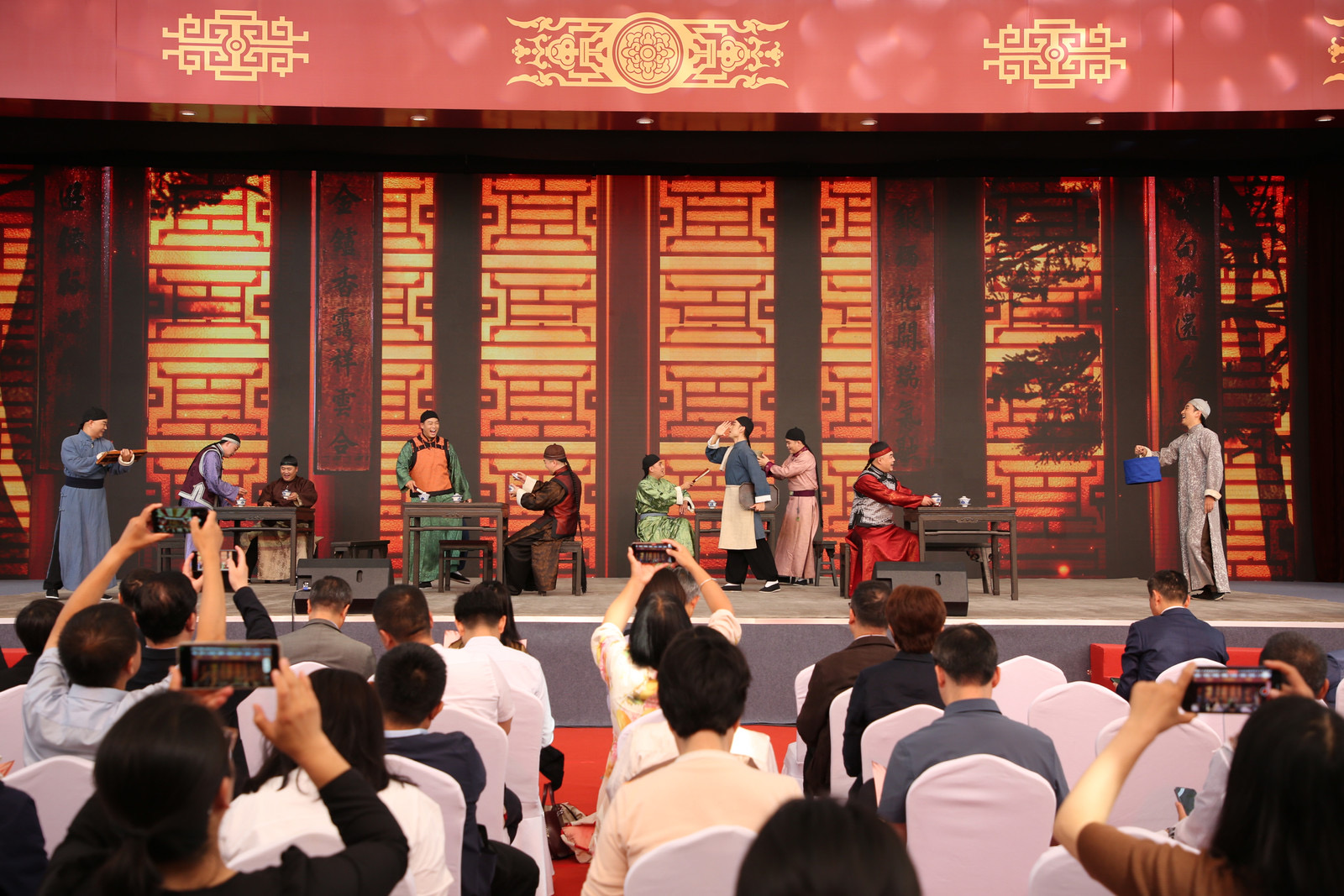 戏曲联唱部分,京津冀地区五大剧种名家同台献艺。曲剧《茶馆》、评剧《花为媒》、河北梆子《潘杨讼》、昆曲《牡丹亭》等经典选段轮番上演,北京京剧院著名京剧表演艺术家迟小秋压轴献唱《锁麟囊》“春秋亭”,体现戏曲周“剧种齐全、流派纷呈”的艺术格局。最后,国家京剧院以《八仙过海》“群仙荟萃耀中华”为开幕演出画上圆满句号。