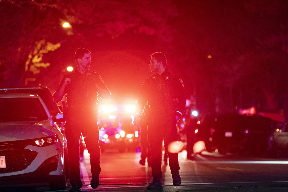 2022年4月22日,警察在美国首都华盛顿西北部一处街区发生的枪击事件现场工作。新华社记者刘杰摄