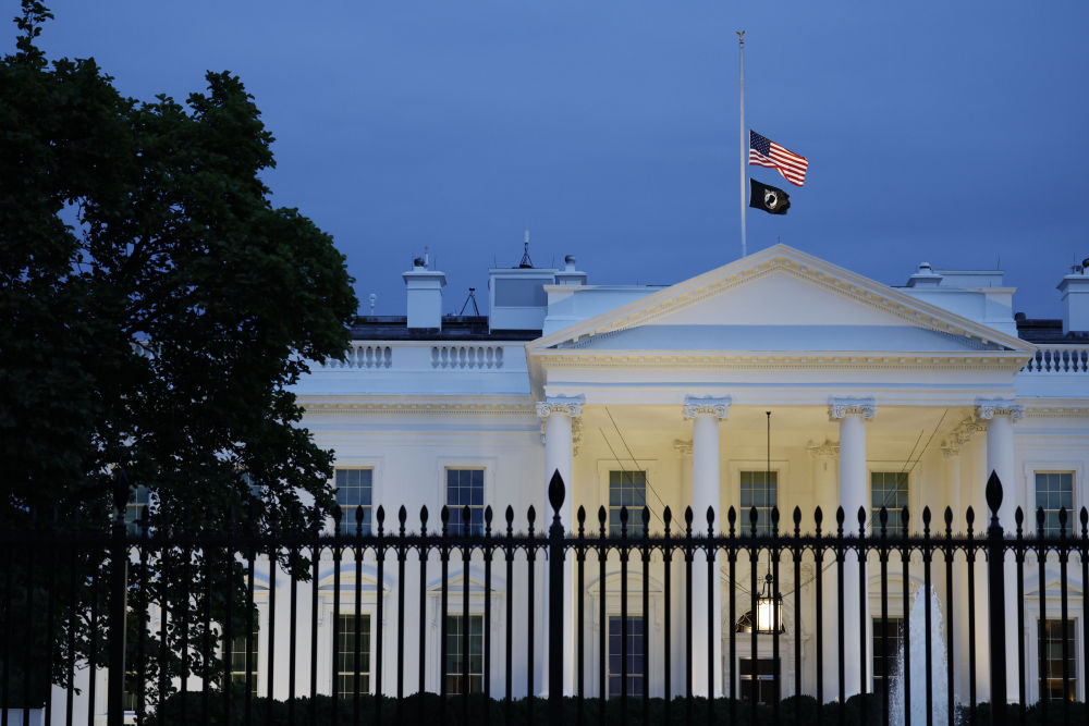 2022年5月24日,在美国首都华盛顿,白宫降半旗向得克萨斯州枪击事件受害者致哀。新华社发(沈霆摄)