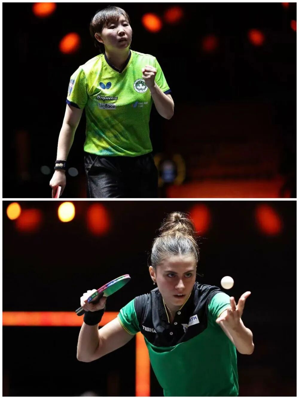 上图:朱雨玲;下图:巴西选手布鲁娜·高桥。图片来自WTT官网