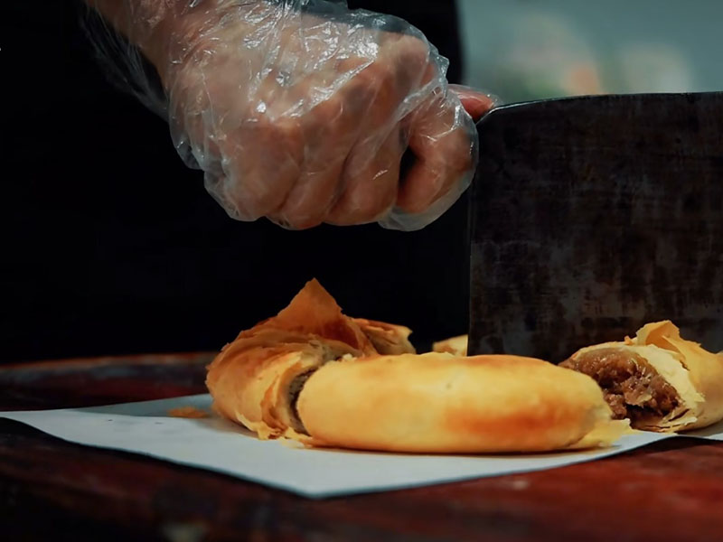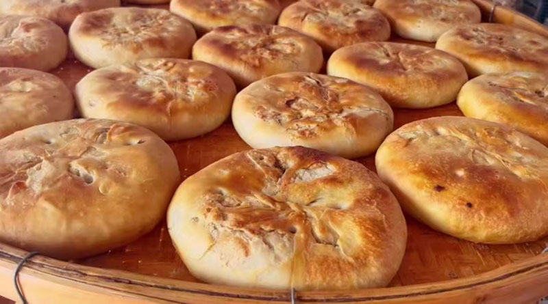烤制同样讲究:成型月饼轻放入炉,老师傅依当日气温严控火候与时间。高温下,月饼渐呈金黄、香气浓烈,出炉后色泽诱人。刚烤好的须自然晾凉,轻咬一口,外皮酥脆掉渣,内馅软糯香甜,芝麻清香满溢舌尖。