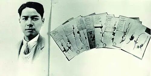 1934年,23岁的蔡希陶和他1933年在云南贡山采集的植物标本野生亚麻。