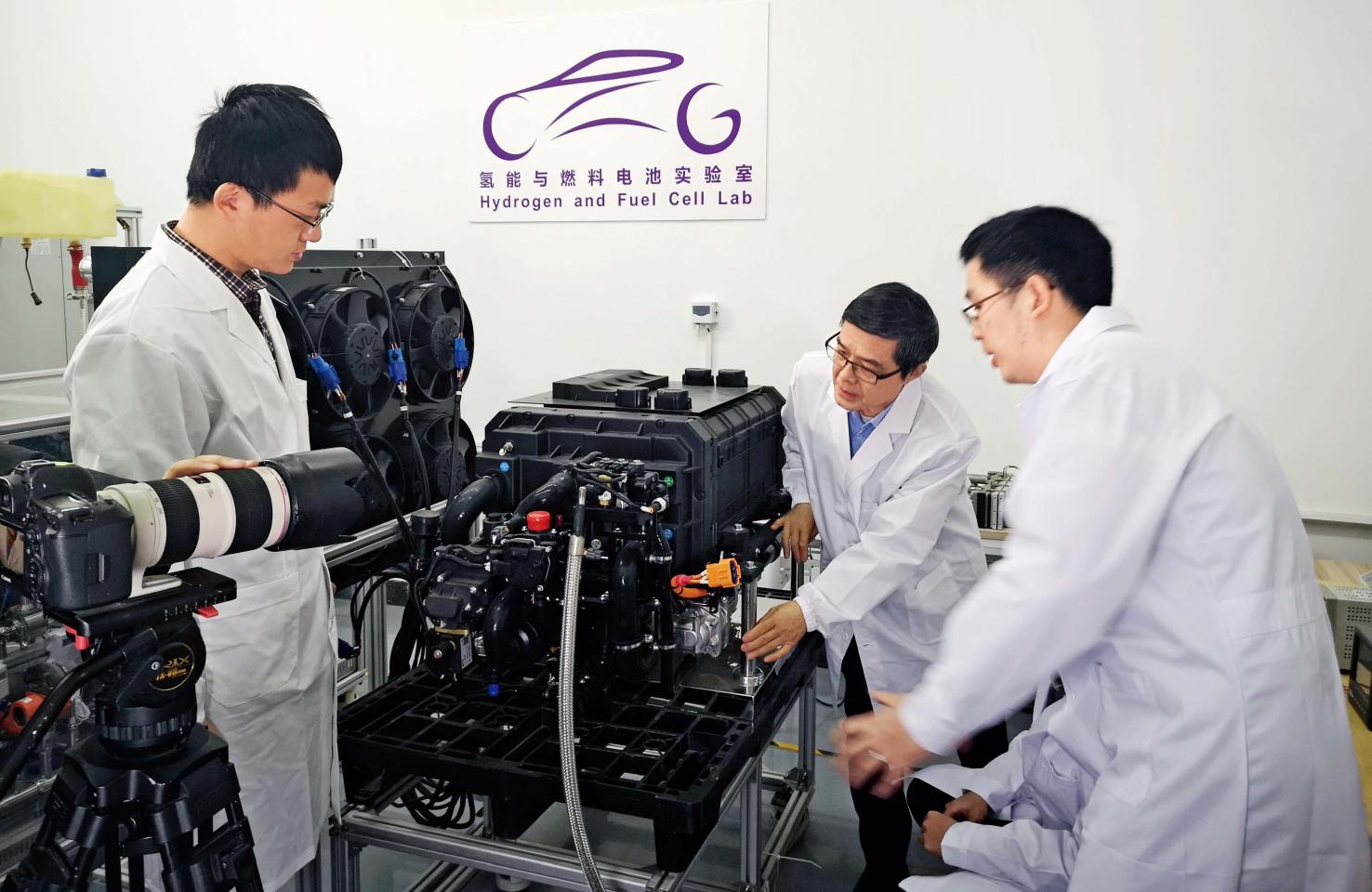 欧阳明高(中)在实验室做科研。(受访者供图)