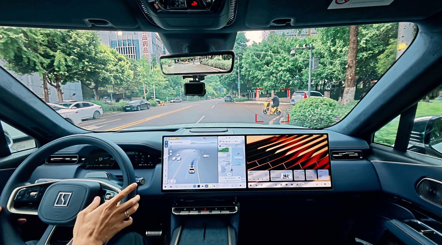 当前,中国车企积极发展智能辅助驾驶技术。图为2025年9月24日,极氪汽车在重庆市江北区测试新车型的智能辅助驾驶避让两轮车功能。(陈露/摄)